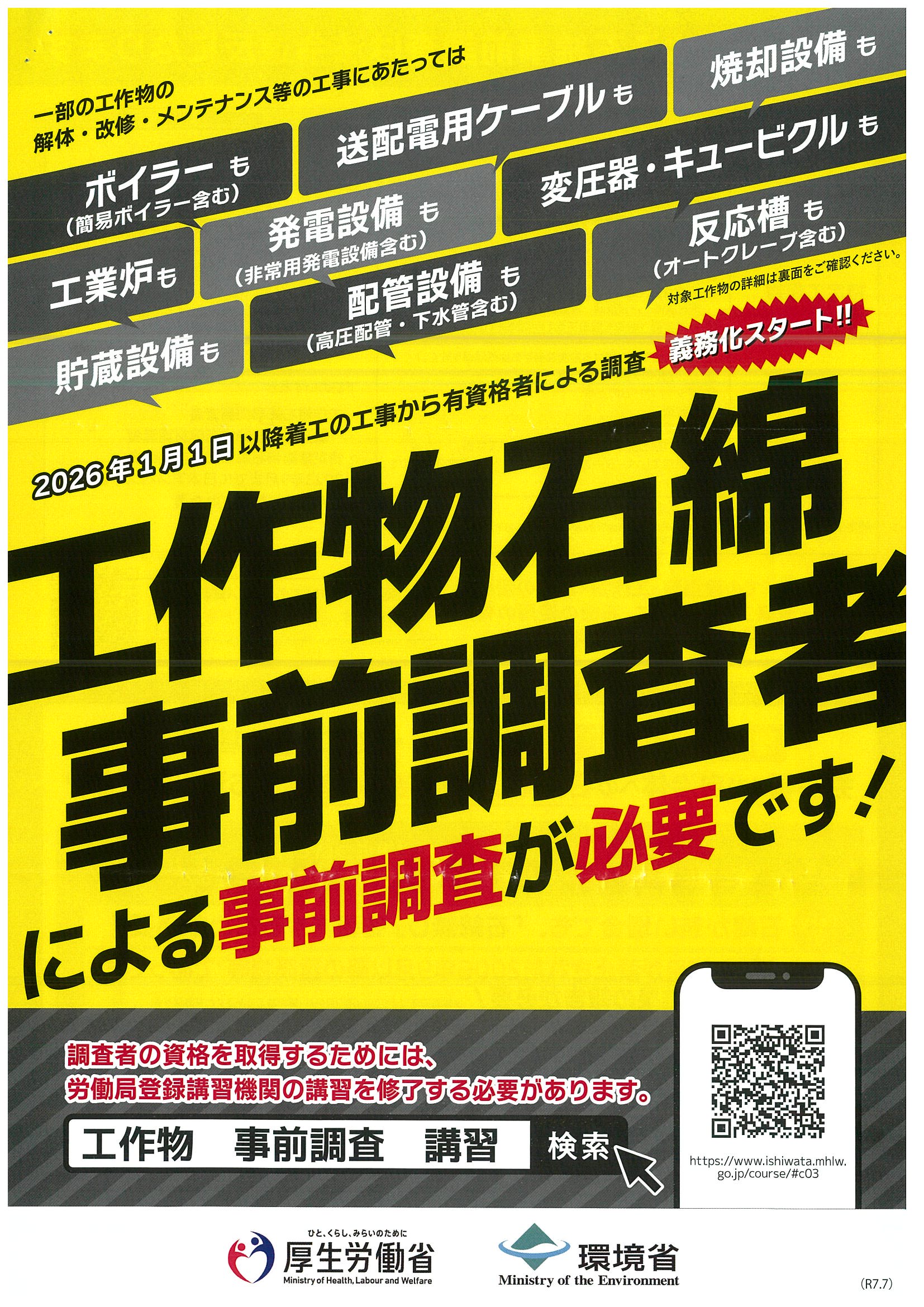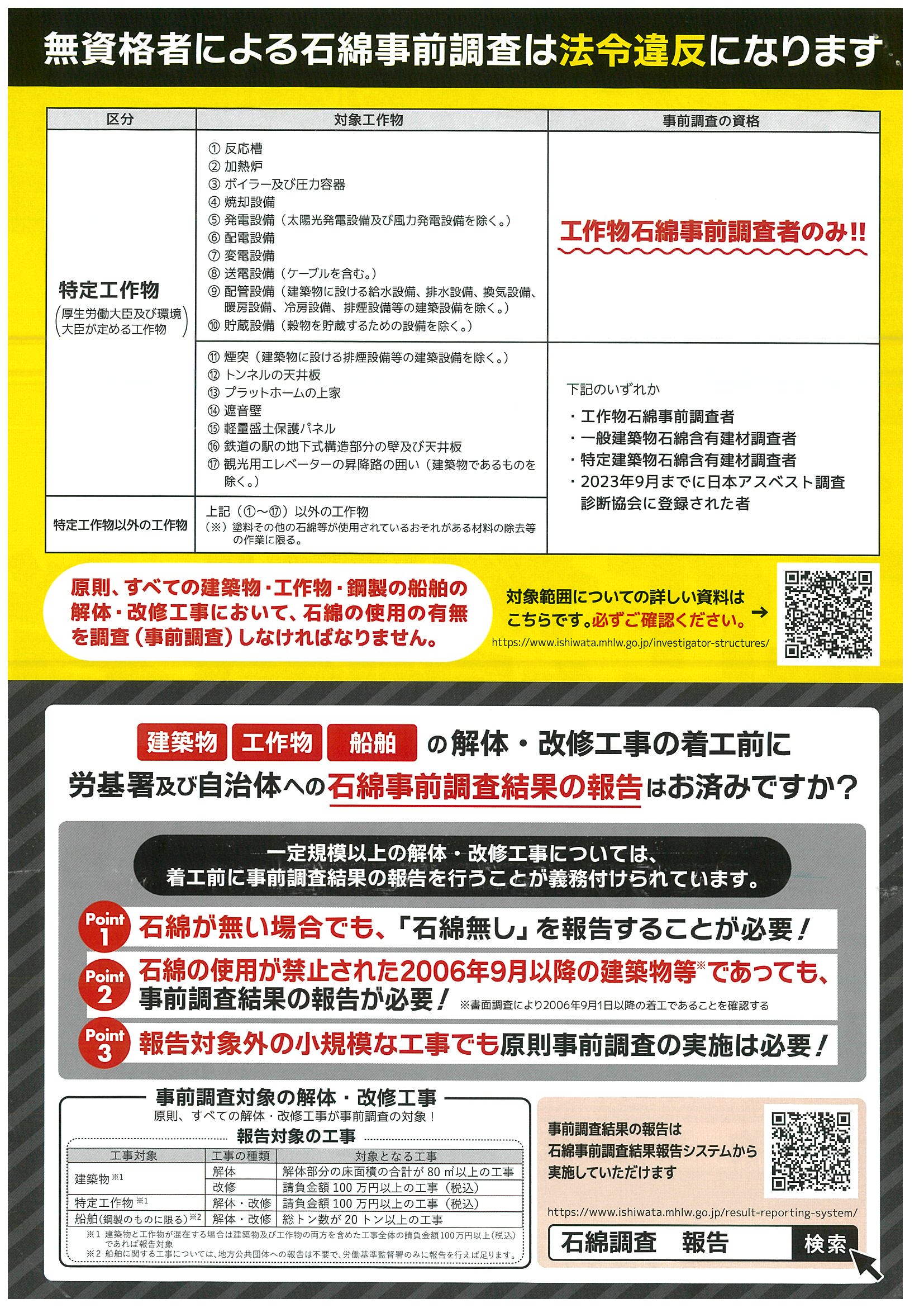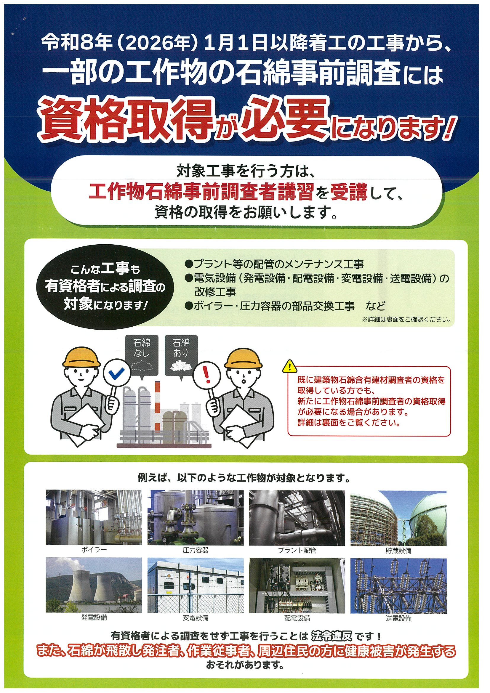 > 建設業 一部の工作物の石綿事前調査について